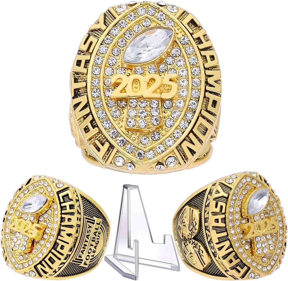 Fantasy Football Championship Ring 2025 | Heavy FFL Champion Ring | Gold Silver Tone Plated Award Trophy for Fantasy Football League Winner