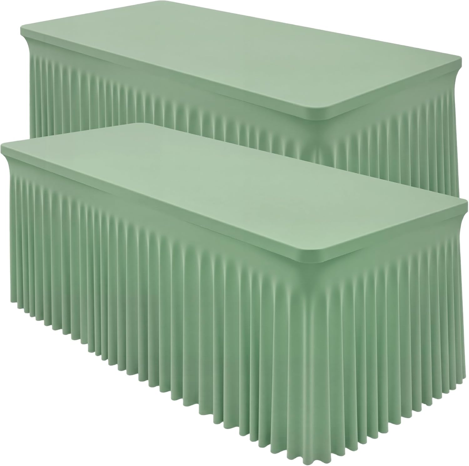 Our spandex table covers 6ft is made of 10% spandex, 90% polyester, wrinkle resistant stretch spandex fabric, pack of 2, which makes the white table cloth stretchy and more durable, no need to iron and can be laundered countless times.