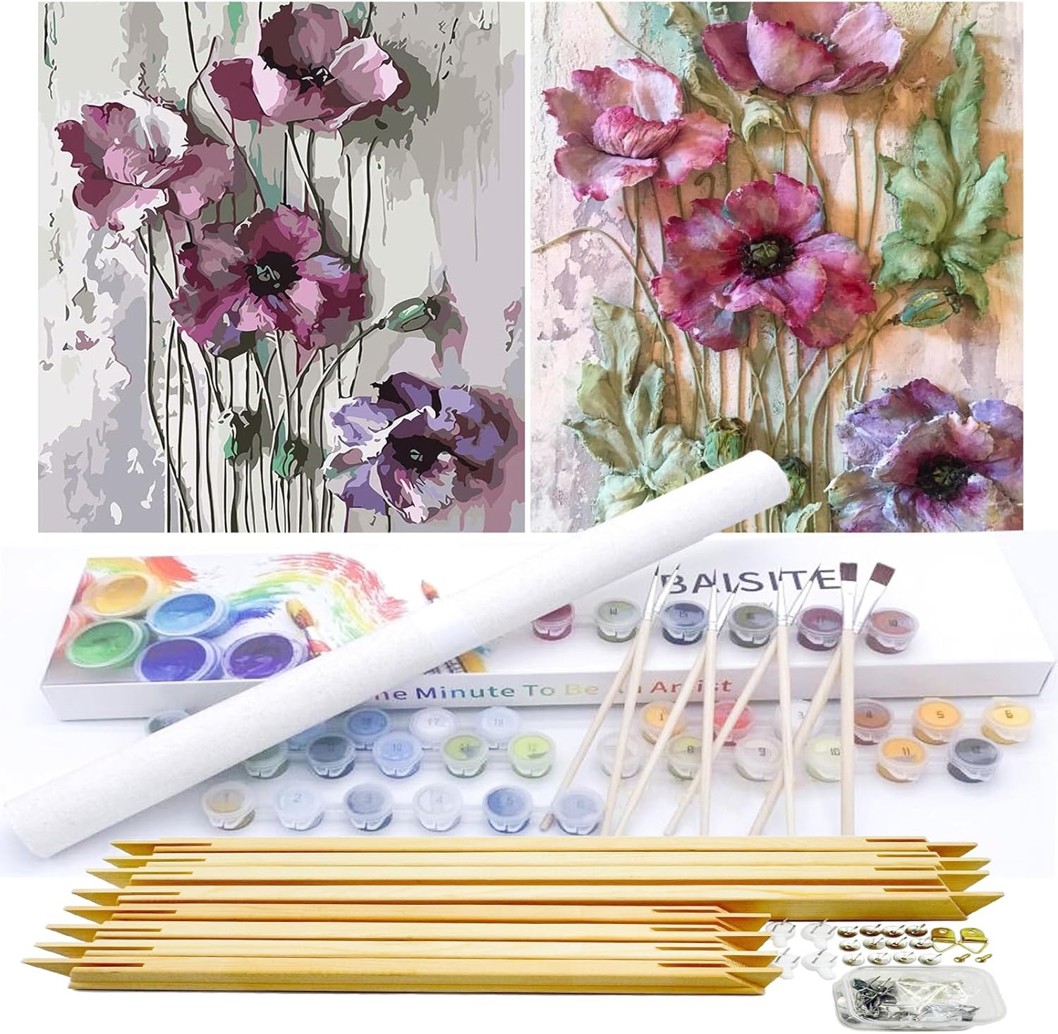 | Included Components | 1 colorful guide, 1 paper copy of numbered canvas for reference, 1 pre-printed cotton and linen canvas, 1 set of acrylic paint, 4 wooden paint brushes |