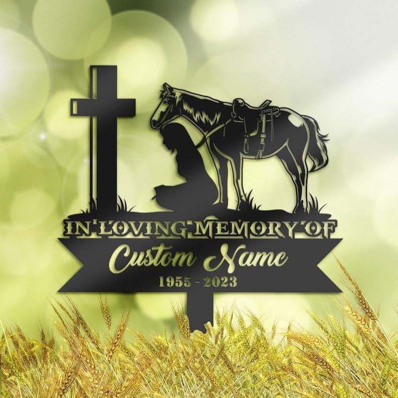 The Personalized Memorial Plaques for Outdoors offer a heartfelt tribute to honor the memory of a cherished loved one with the depiction of a dragonfly on metal garden stakes. These grave markers serve as enduring symbols of remembrance in outdoor spaces, reflecting the beauty, freedom, and grace of the departed individual's spirit. Crafted as dragonfly memorial gifts, they extend condolences and support to those mourning the loss of a loved one. Customizable options, such as personalization with the individual's name or significant details, ensure a deeply personal tribute. Placed in gardens, memorial parks, or other outdoor settings cherished by the individual, these memorial plaques stand as enduring symbols of their legacy, offering comfort and remembrance to those who mourn.