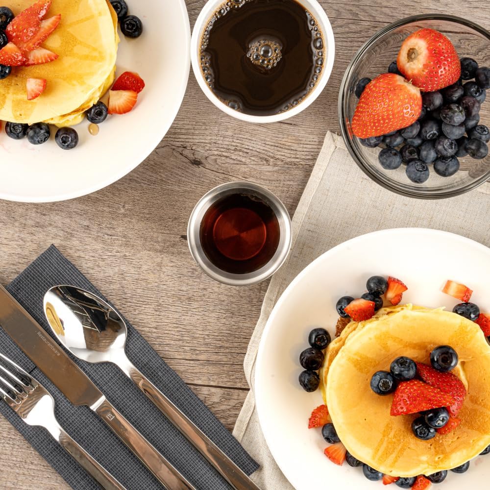 Stylishly serve tasty condiments with our Met Lux Stainless Steel Condiment Cups. Constructed from stainless steel, these durable metal condiment cups bring a modern look to your fast casual restaurant, bistro, cafe, and more. Containing up to 2 ounces, these reusable stainless steel condiment cups are the ideal size for holding delicious sauces from tangy ketchup to sweet honey mustard. Pair these contemporary condiment cups with delicious french fries or crispy onion rings. These 2 oz stainless steel sauce cups measure 2.6 inches in diameter by 1 inch tall and ship in a 10 count box.