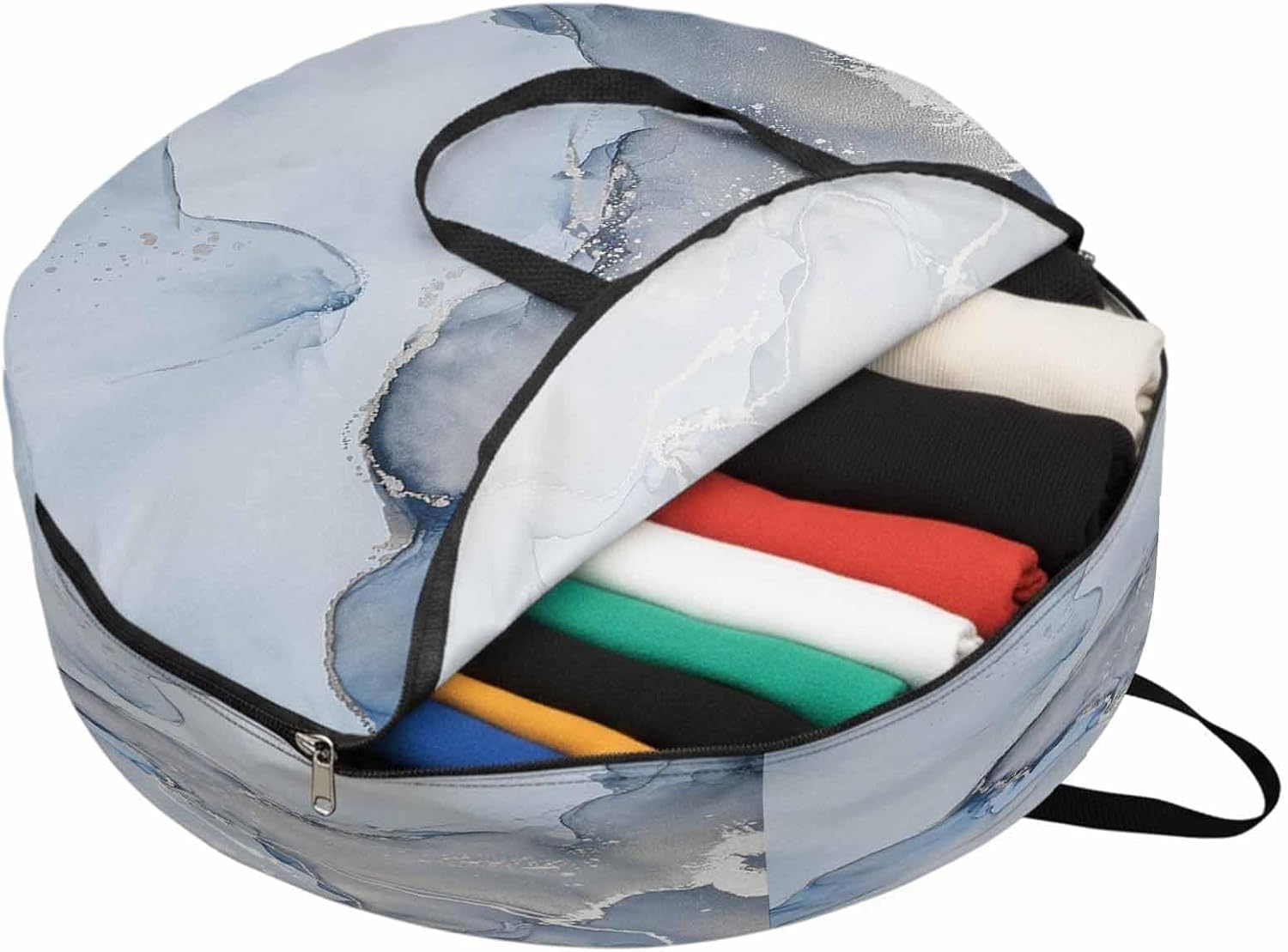 Reclaim Your Closet Space with the Round Storage Solution! Material: polyester Diameters: 24 inch, 30 inch, 36 inch Depth: 7 inches Package Includes: Round Storage Bag One Bag, Endless Possibilities: Whether you are swapping out your summer wardrobe, moving into a new dorm, or packing away holiday decorations, this bag has you covered. The circular design is uniquely suited for: Bedding: Comforters, quilts, sheet sets, and oversized pillows. Clothing: Winter coats, sweaters, and bulky ski gear. Home Decor: Holiday wreaths, garlands, and floral arrangements. Outdoor Gear: Camping blankets, sleeping bags, and beach towels. Dual Zippers: The high quality double zipper design allows the closet organizer to open wide from both sides, making it effortless to load and unload even the bulkiest comforters or wreaths. Reinforced Handles: Sturdy, reinforced handles are securely stitched to provide extra strength and a comfortable grip when carrying heavy loads or pulling the bag from under a bed. Clear Label Pocket: A transparent built-in label holder allows you to quickly identify the contents of each bag without ever having to unzip it, keeping your storage perfectly organized.