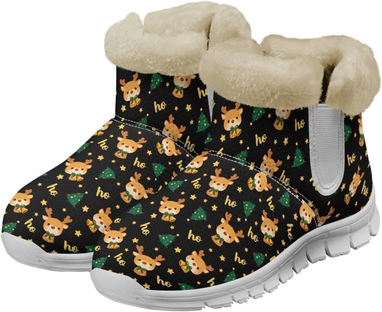 Embrace the Cold in Total Comfort: Your All-Season Winter Boots All-Weather Winter Protection Heat-Trapping Lining: The buttery soft flannel fleece interior creates a warm air pocket around your feet, providing consistent warmth from the first snowfall to the last. Water-Resistant Shield: The high-density upper material acts as a barrier against slush, rain, and snow, keeping your feet dry and comfortable in wet winter conditions. Secure Traction: The rugged rubber outsole features an advanced anti-slip pattern for maximum grip and stability, giving you confidence with every step on hazardous ground. Thoughtful Design for Style & Ease Ankle Protection: The higher cut offers crucial support to your ankles, reducing fatigue and providing stability on uneven terrain. Effortless Convenience: The integrated elastic sides allow you to slide the boots on and off quickly without compromising the secure fit, perfect for a busy on-the-go lifestyle. A Style for Everyone: From classic solid colors to unique snow-themed prints, our diverse range is designed to complement your personal winter wardrobe. Other Else Women’s Winter Boots’ Size: 36=6: 240 mm Insole Length 37=7: 246.7 mm Insole Length 38=7.5:253.4 mm Insole Length 39=8: 260 mm Insole Length 40=9:266.8 mm Insole Length 41=10:273.4 mm Insole Length 42=11:280 mm Insole Length 43=12:286.8 mm Insole Length Suitable Occasions: Perfect for various of outdoor activities, such as vacation, skiing, walking the dog, hiking, fishing,mountaineering, camping, driving, skiing and so on.They can also be as unisex winter hiking boots. Ideal Gifts: It also can be a heartwarming gifts for relatives, friends and lovers in Christmas, Halloween Day, Thanksgiving Day, Valentine Day, Birthday and Anniversary etc.