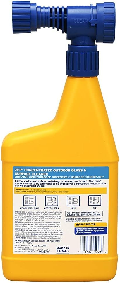 Zep Hose End Outdoor Glass and Surface Cleaner - 32 oz (Case of 6) - U49910 - Easy-To-Use, Attach and Spray for A Streak-Free Shine