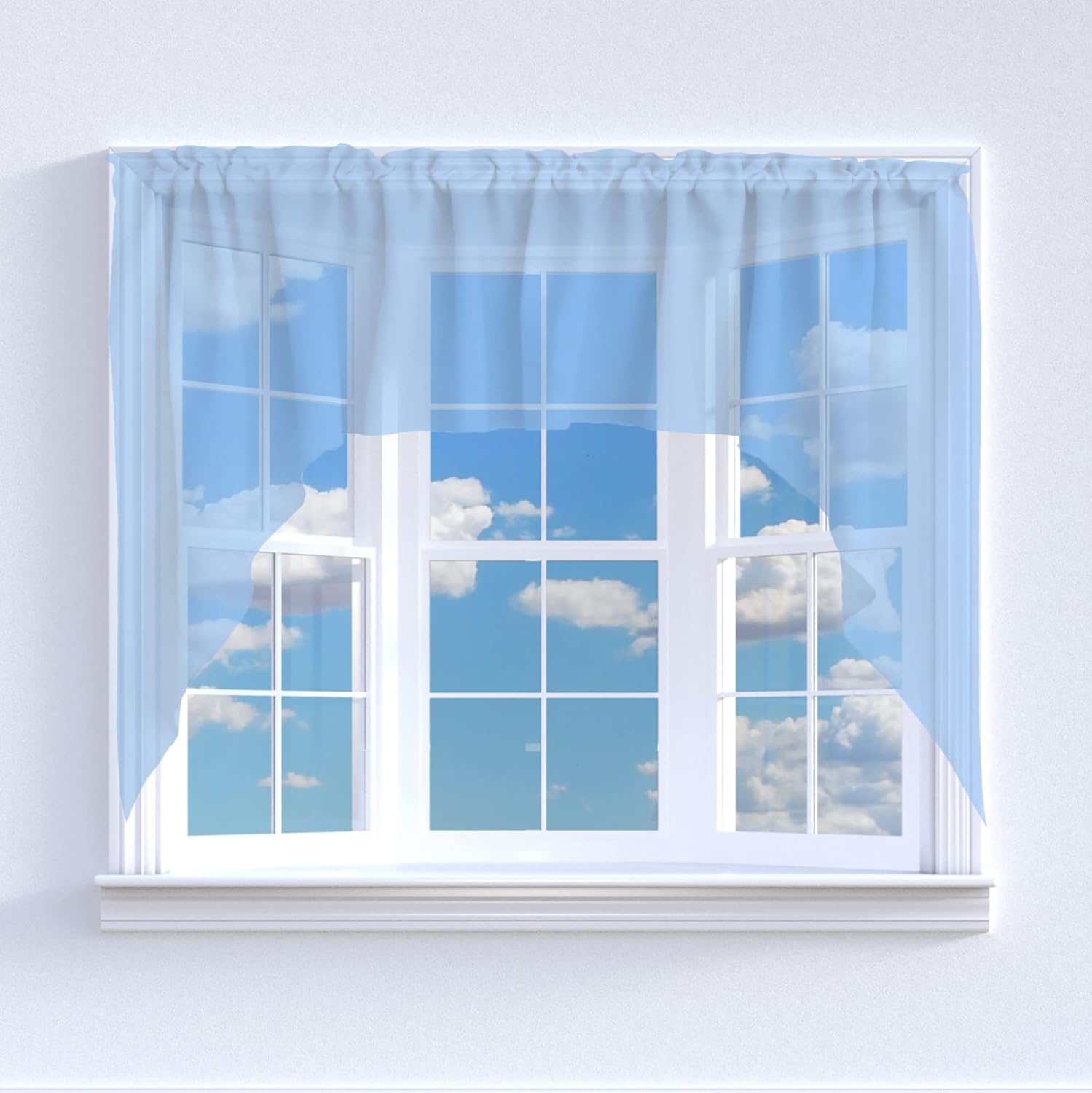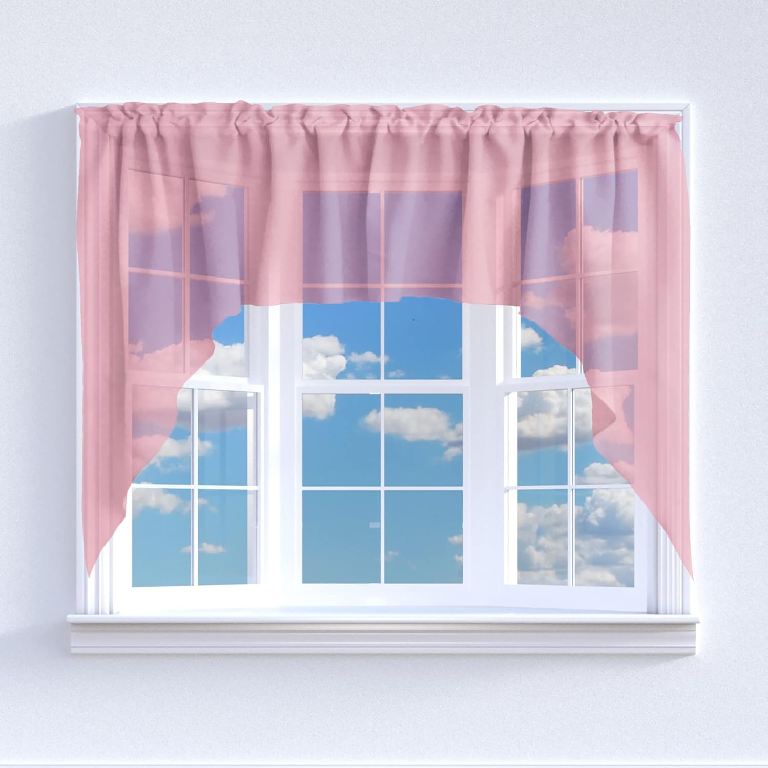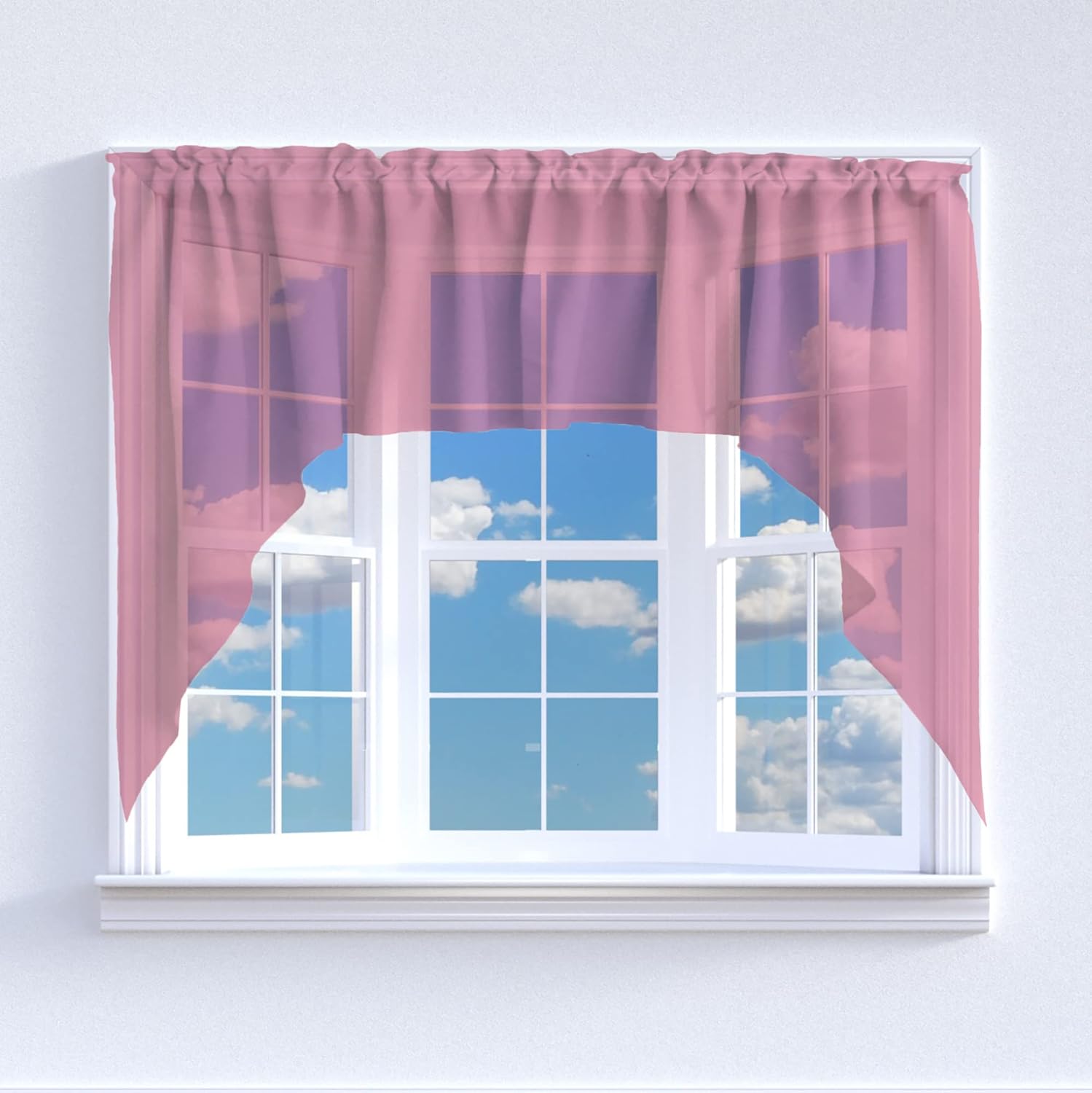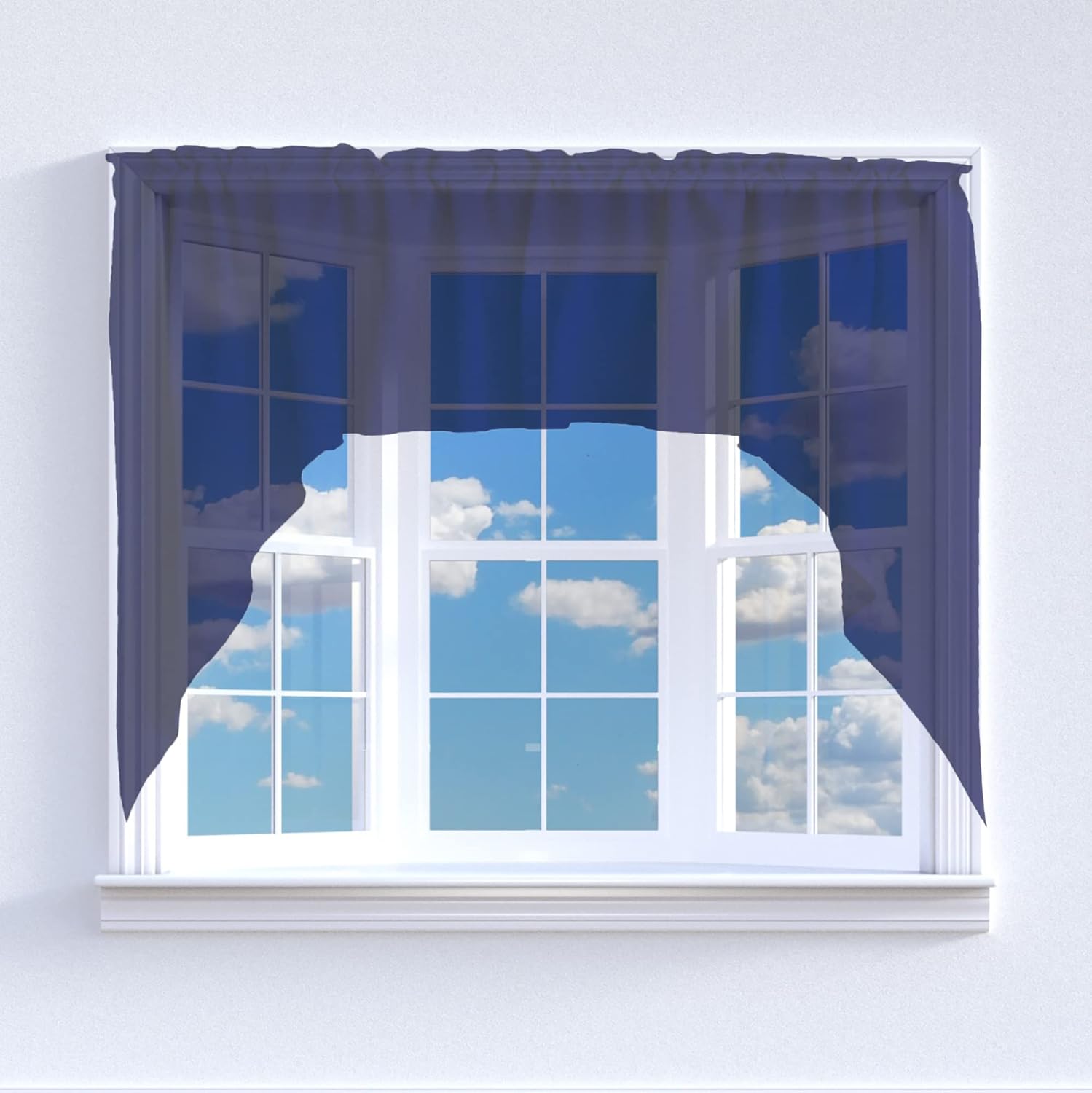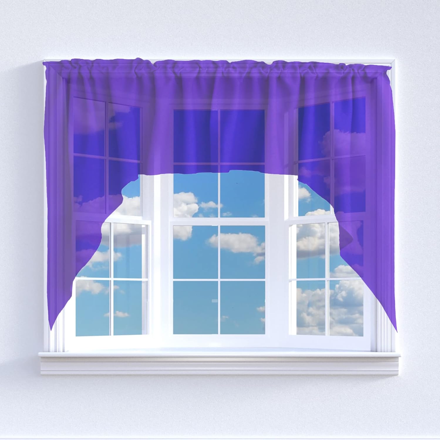 Solid sheer organza Swag valance. This includes a valance with the measurements of 72" wide with 36" ends and an 18" middle. One inch header above a three inch rod pocket at the top of the valance. Multiple colors available. The colors of products when viewed on your computer monitor may appear different than the actual color of the merchandise. We make every attempt to give you a good representation of the available colors for each product sold, but unfortunately we cannot guarantee an exact match. Made in America.